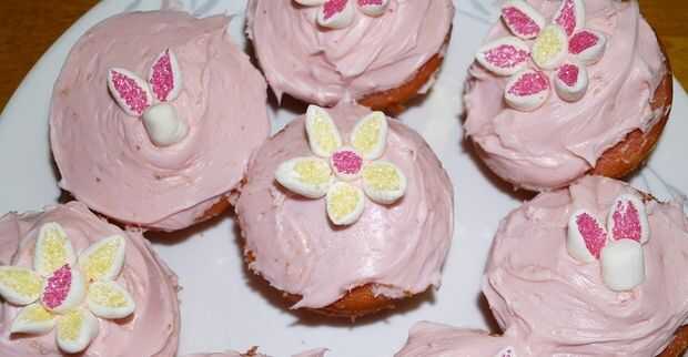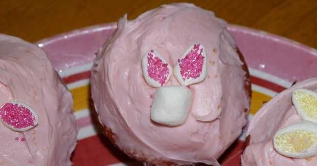 3. Coloque cuidadosamente su melcocha 'conejitos' sobre tus cupcakes! La cabeza del conejo es sólo un malvavisco mini sólido.