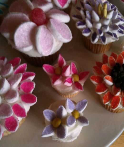 Coloque cuidadosamente su melcocha 'pétalos' sobre tus cupcakes! Se ven muy bien con poco dulces en el centro, o el centro con la guinda de la pipa.