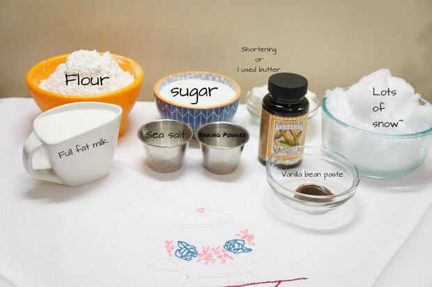 Tazón grande de nieve fresca (aproximadamente 2 tazas nieve libremente embalada) Shaved hielo funcionará también si vives en la ciudad. (Que siempre nos enseñaron a utilizar la nieve que ha caído varias horas después de la primera nieve. Las primeras horas de la nieve tiene un montón de partículas que hayan caído de la atmósfera. Si usted vive en una zona donde hay mucho smog entonces advertiría que no se haga esta receta. Vivo en un pueblo pequeño no hay mucho tráfico, sin grandes ciudades cerca de o plantas de fabricación.