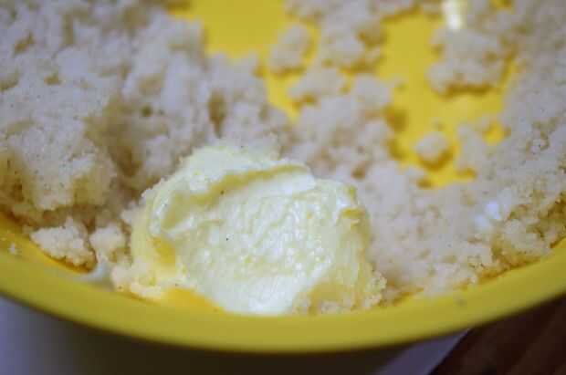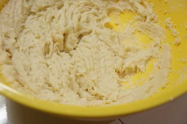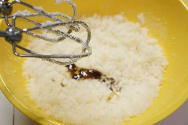 Crema la azúcar y mantequilla (o manteca) juntos y agregar vainilla. solía un procesador de alimentos mezcla el azúcar y la mantequilla juntos.