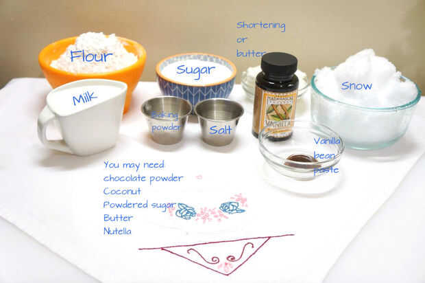 Traer la nieve de afuera y poco (a mano). T mezcla tendrá pequeños grumos, esto está bien y prefiere como la nieve actúa como el levadura del agente para el mezclas porque estos terrones crean una bolsa de aire que provoca la mezcla aumentando, si no me equivoco. Leí un artículo sobre el uso de nieve en lugar de levadura para hornear pan.