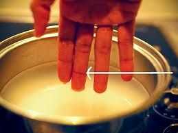 - Luego ponga suficiente agua en la olla para que abarca hasta el primer nudillo de su dedo pulgar.