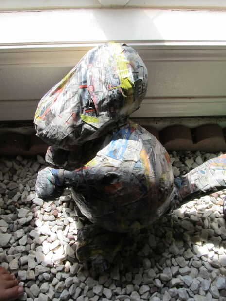 Una vez seca puede Agregar los extras si quieres. Repita el proceso una vez más. Ahora tendrá unos 5 - 6 capas cubriendo su forma. Se dispuso la piñata a secar otra vez durante 24 horas.
