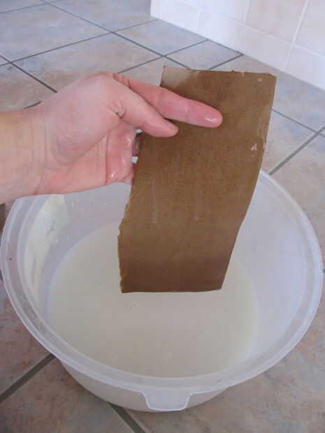 ' Sumergir una tira de papel en el almidón y utilice sus dedos para "rasero" a cualquier exceso.