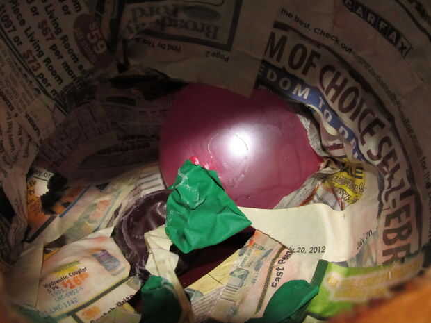 Decidir cual será la parte superior desde donde se colgará. Luego en el lado de la piñata en la parte superior corte una "puerta" por cuting 3 lados de un cuadrado entonces plegamiento las capas a lo largo de la parte sin cortar. Se desea que la puerta sea lo suficientemente grande para adaptarse a su mano a través de, pero no tan grande que tienes casi cortar la pobrecita en mitad (menos es más, ya que la puerta sea un punto de debilidad durante él está LATIENDO). Cuando cortar el pinata probablemente escuchaste su globo pop dentro. Abra la puerta y la ojeada en para buscar sobrevivientes. Revienta cualquier globos que se inflan aún. Retire las entrañas del globo para su eliminación.