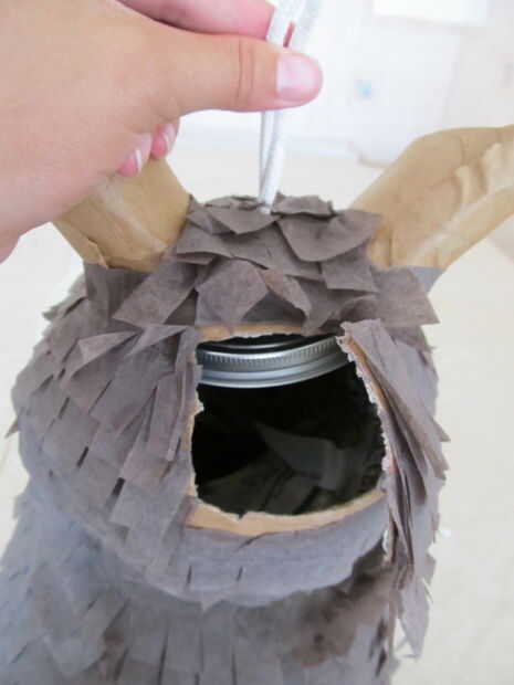 ' Levantarse el bucle a través del orificio en la parte superior de la piñata