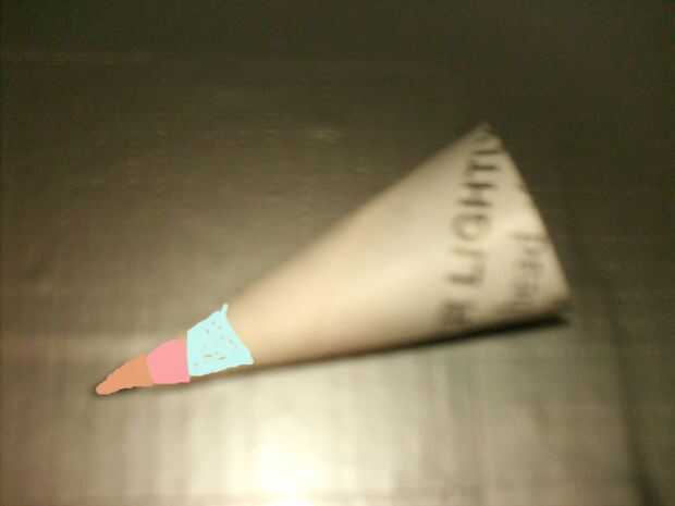 Primero añadir la mezcla explosiva (representada por el salmón-y colorear el gráfico), usando el papel para él en embudo.