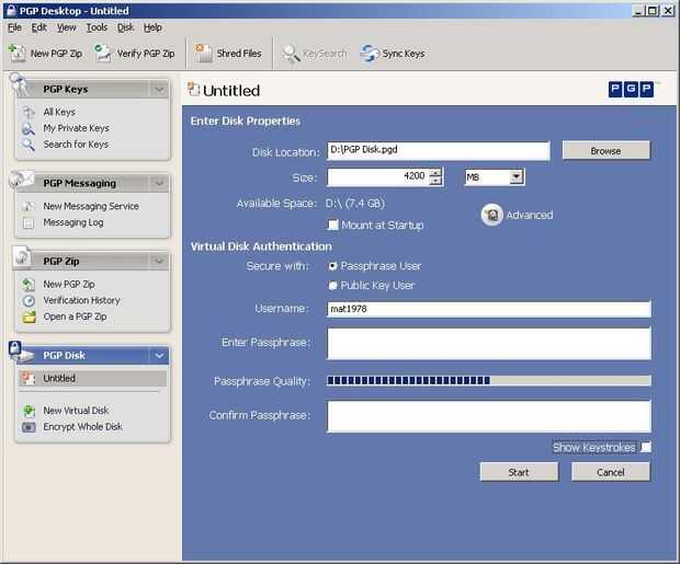 Yo utiliza PGP desktop para hacer conductor VIRTUAL cifrada (E.V.D).