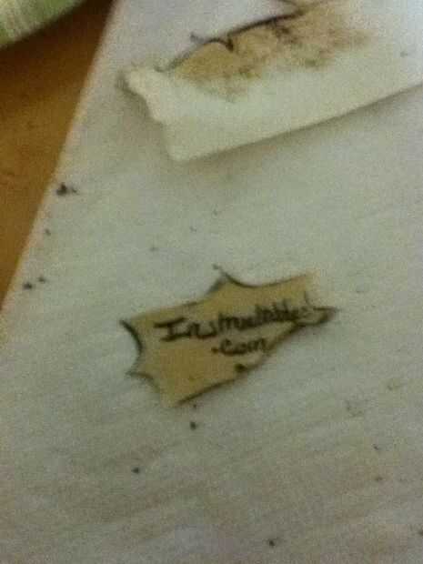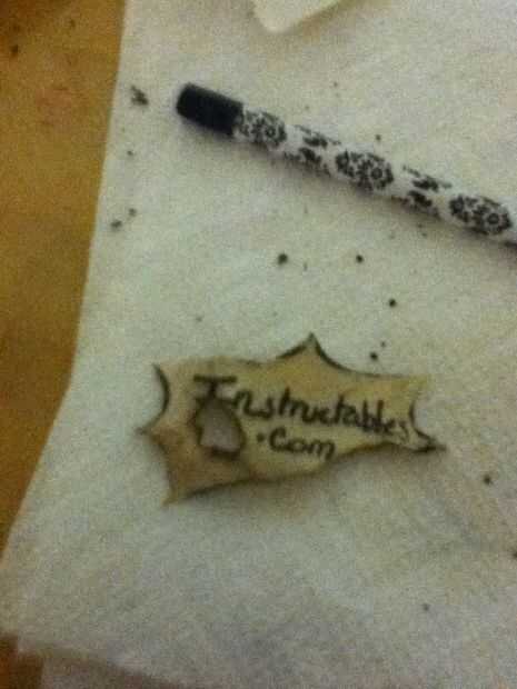 Para hacer el efecto "quemado" en este documento, usted necesita un encendedor. inmediatamente después de remover el poso del café del papel tome su encendedor y suavemente recorren donde quieras la quemadura. El papel debe estar húmedo mientras que usted quema. para hacer el agujero, utiliza el extremo puntiagudo en un compás de la geometría para haga un orificio y luego quema el papel hasta que parecía que lo quería.