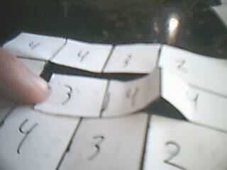 y ahora tienes que cortar los tres lados de los cuatro alrededor de los mediados dos números.
