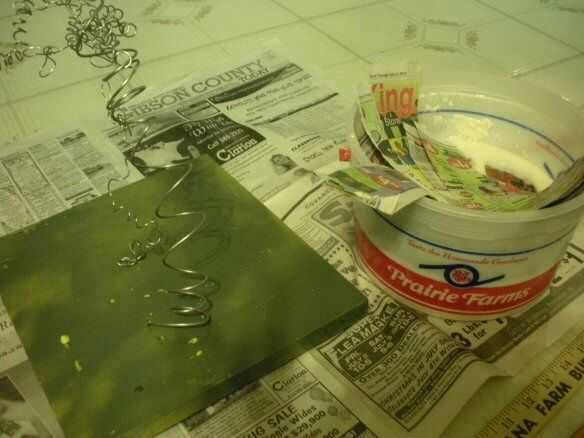 Poner su árbol en un área de trabajo que no le importa conseguir desordenado porque cuando esta mezcla se pone en algo y se seca es difícil de bajar.
