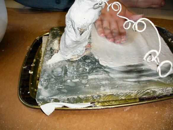 Corte la tela de yeso en tiras asegurándose de que no se les moje a menos que vas a utilizar. Si el rodillo mojado y cuando se seca y luego se arruina, se puede no volver a utilizar...