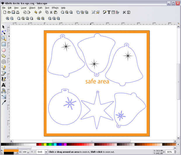 Decidí que quería 6 decoraciones en mi P1.svg. He redimensionado la decoración y luego lo azulejos que 6 campanas cabido dentro de la zona de seguridad.