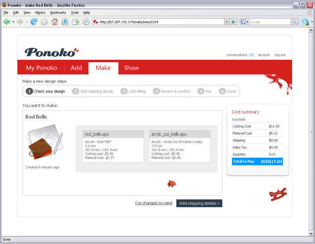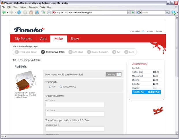 La primera pantalla confirma los detalles de su pedido así como mostrando los costos hasta el momento. Haga clic en "Paso 2" y luego seguir los pasos que hace: