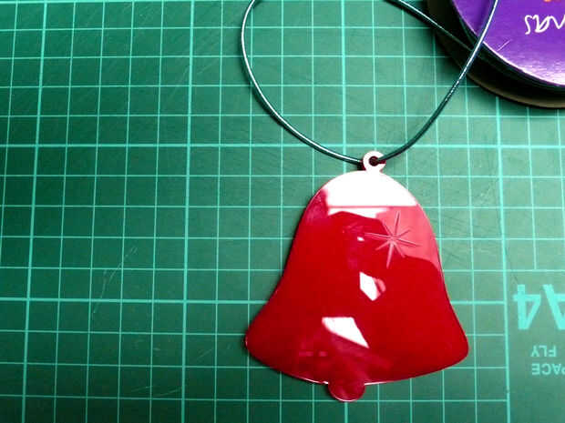 Colgar tu decoración colocando cinta/cuerda/hilo a través del orificio en la parte superior de la campana.