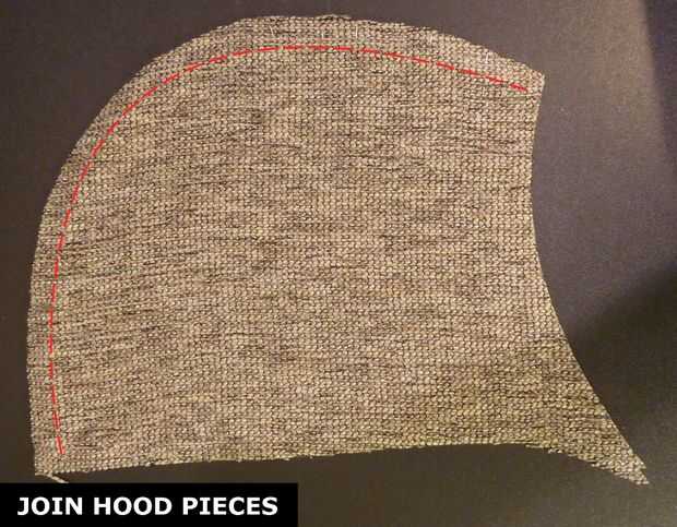 3. Recorte el margen de costura que une al cuerpo del poncho a 3/8 de pulgada.