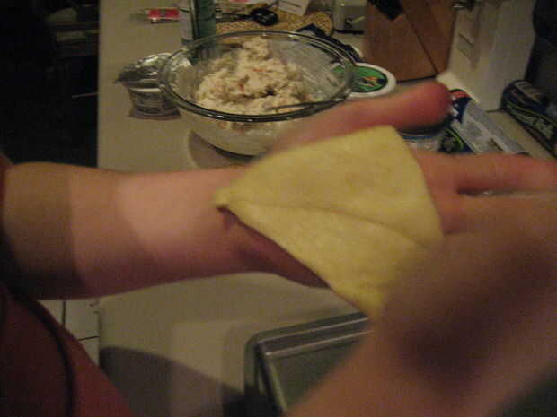 Cómo hacer delicioso cangrejo y pollo rollos (7 / 12 paso)
