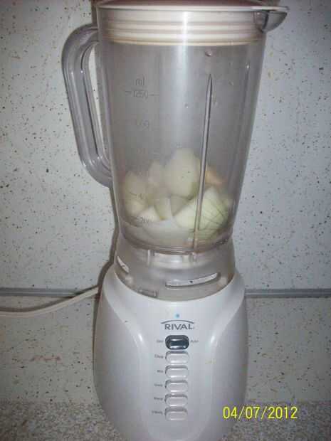 � añadir 2 dientes de ajo junto con la cebolla cortada en la licuadora