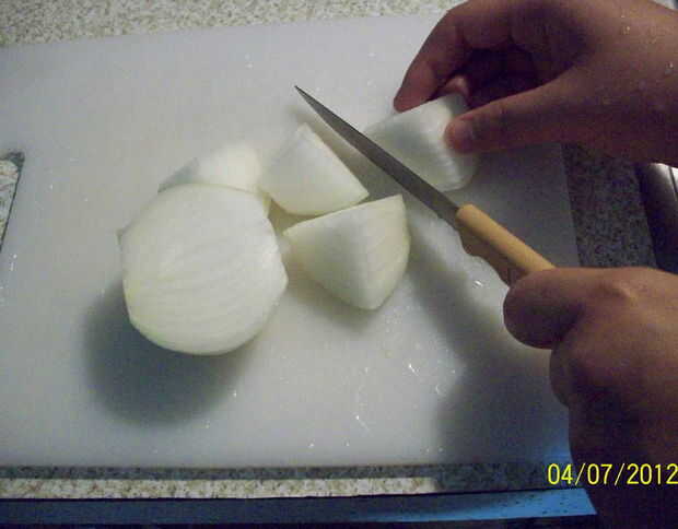 TIP: No ponga demasiada agua como va a afectar esto el espesor total de la salsa. Por lo general, añadir agua hasta la mitad de la altura de la cebolla y el ajo