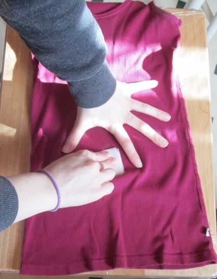 3. Sostenga el artículo de la ropa plana con la otra mano