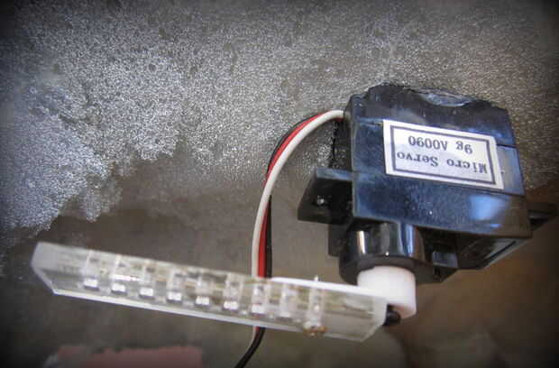 Podemos hacerlo con circuitos relativamente simples utilizando el popular Arduino. Usted puede conseguir algunos buenos tutoriales en ladyada.org o arduino.cc. El código es una mezcla entre la detección básica de sensor de luz y el movimiento del servo simple. Se puede encontrar a continuación. Una nota sobre el código a continuación. Nos pusimos dos servos de tamaño diferentes, por alguna razón que el movimiento de estos es diferente así que una variedad modificada para el servo más pequeños debían utilizarse. Lo importante es que el servo se mueve de horizontal a vertical. Esto puede significar que usted necesita ya sea juego con los valores en el código o la posición actual del brazo servo.