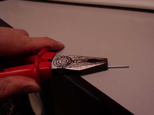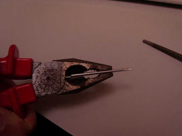 Corta un trozo recto de alambre y el archivo del plano de extremos. Para la presentación de los lados me gusta agarrar el alambre como se muestra en la segunda imagen. Los alicates para alojar un poco de alambre, y no desea que la punta sobresalga demasiado, así que uso una longitud razonable.