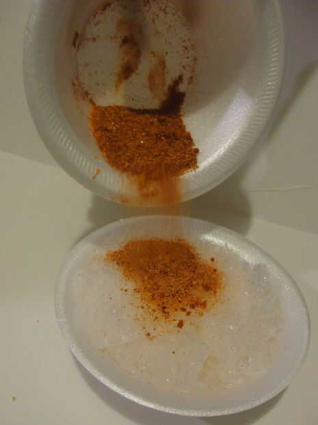 Un lado relleno 1 cucharada de Puco De Gallo y Tajín (Lucas Powder)
