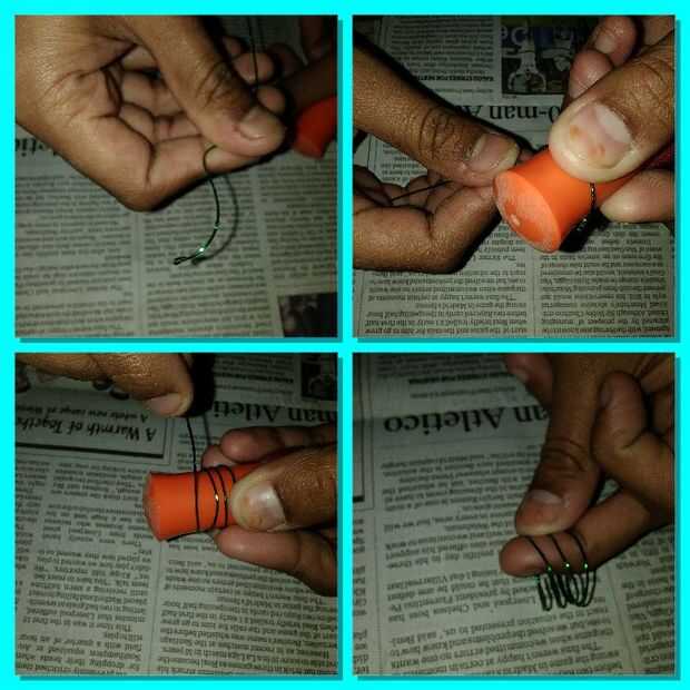 En primer lugar tomar un alambre de joyería y hacer un nudo tipo al borde del alambre. Ahora toma un mandril o cualquier objeto de círculo y empezar a envolver 4 capas.