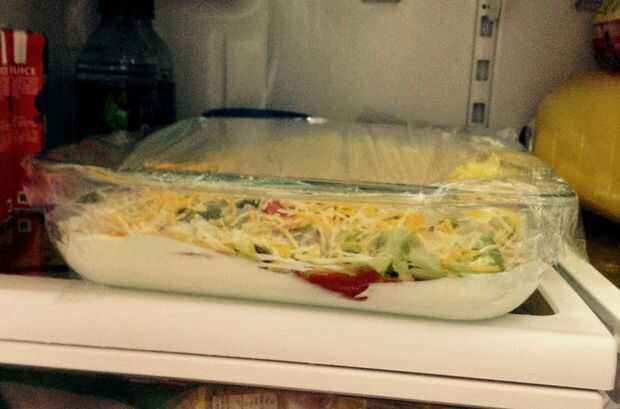este es el mejor siempre por inmersión. Mi familia ha estado haciéndolo durante años...Lo que usted necesita:Queso CottageSalsa de tacoLechugaQueso cheddar ralladoPaso 1: Cortar algunos lechuga Asegúrese de que se es picado bastante fino. Los trozos