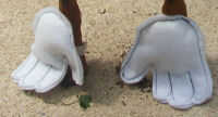 Si desea, puede hacer pequeñas manos de fieltro blanco y añadir elástico a ellos para ir alrededor de la parte delantera de los pies de los perros como se muestra en la foto. Había cortado 4, cosieron 2 y luego el elástico para que sea más de un efecto 3D.