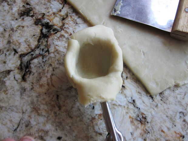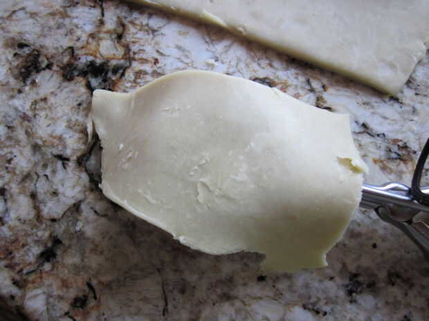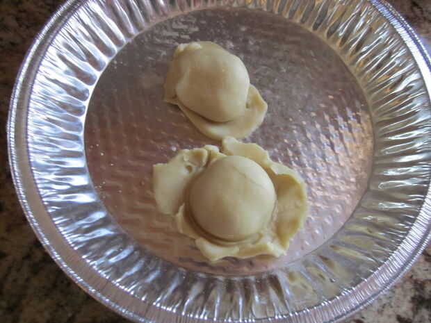 Ahora viene la parte difícil, tomar la la cuatro por cuatro andplace sobre una galleta cuchara luego suavemente, empujen a partes de masa de forma el lugar completo después de frerezer durante diez minutos.