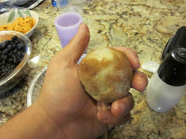 Siguiente después de tomar el cepillo con la leche y las partes de la masa hacia fuera, ahora mezcla fresca bayas azules y baya azul esmalte juntos y bayas en cada mitad de la cuchara y junte clip de un poco de la masa por lo que sólo hay una tener una pulgada a la izquierda tomar algunos masa extra y luego coloque sobre parece para que no escape. Ahora poner un mixure de media taza de azúcar, sopera de cinnomon, cuchara de té de nuez moscada mezclar, cepillo circular bolas y rodillo en azúcar mixure. Último lugar palo en bola y pre calentar el horno a 350 y Hornee durante 30 minutos o hasta dorado marrón. Disfrutar