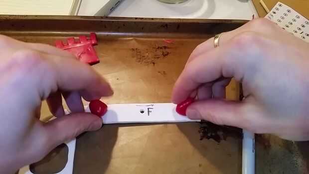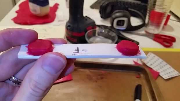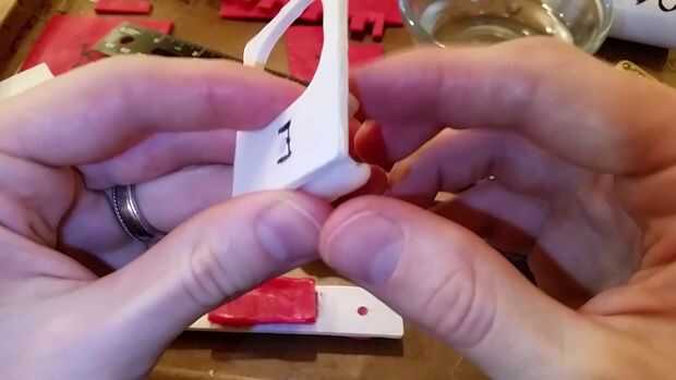 Ahora 1/4 de cucharadita de plástico para cada uno, para crear los pedazos de 4 Monte que se utilizan para atornillar el soporte. Cada uno deben aproximadamente 1/2" de alto. Una vez enfriado previo taladro y atornillelo en y hacia fuera y hacia adentro y hacia afuera a rosca el plástico.
