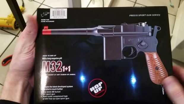 Usé un águila doble marca primavera M32 rifle que es un 1:1 escala imitan de la Mauser C96 que fue la base de la proposición original.