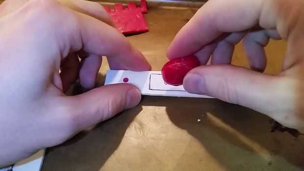 D es para Darth malo, traza esta forma en papel de cera, y utilizando 1/2 cucharadita de plástico cada uno, hacer 3 perillas redondeadas y presione los tornillos en el centro de ellos. Puede calentar los bordes y presionar en un patrón de rayado texturizado y en la prensa superior en un pequeño círculo para que coincida con la hélice original. uno de ellos debe tener un círculo más grande que las otras dos.