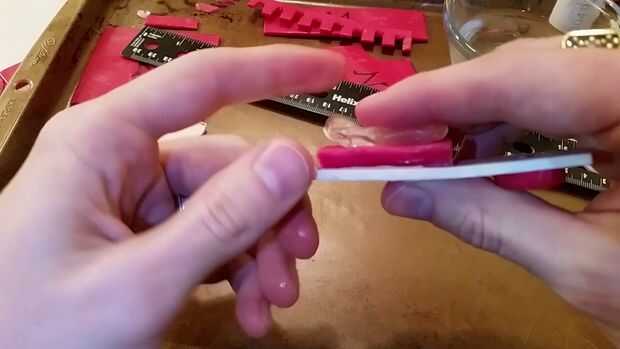 Recomiendo usar un pedazo de lámina de plástico de desecho para calentar y extendido fino en la parte posterior para unir la pieza deslizante para no deformar la forma del cursor.