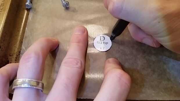 Tire de la pieza F del congelador y colocar 1 cucharadita de las cosas buenas en el trapezoide, cubriendo como una cáscara, pero dejando abierto los extremos para que después se enfría se puede limpiar y puede deslizar.