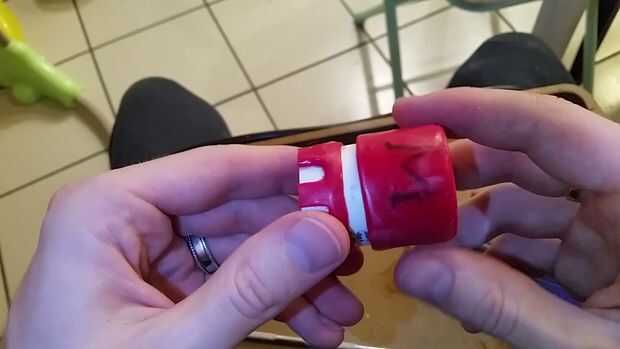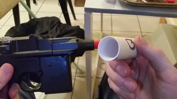 1 cucharilla de plástico en el cañón de la pistola y deslice la pieza Q en su lugar. Asegúrese de que el barril se mantiene claro y centrado.