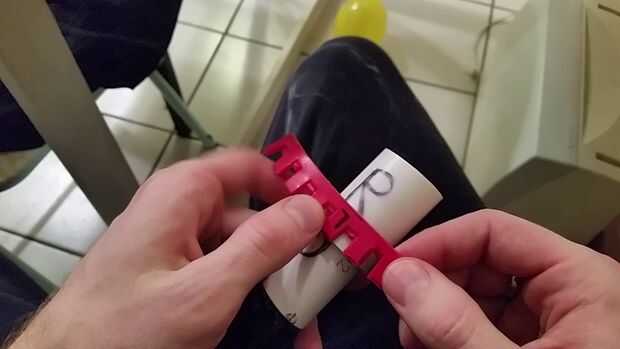 Para completar nuestro flash hider tenemos un par más adiciones, L se ejecutará a lo largo del borde del lado Q de R, M irá en el lado opuesto, dejando aproximadamente un 1/4" el espacio entre los dos. Colocando la pieza de M, pulse un aspecto acanalado en él con las líneas de corriente paralela a la tubería.