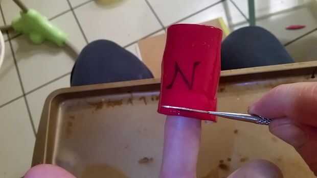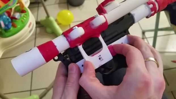 Derretir plástico letra N en el exterior de PVC N y prensa costillas en él así es mira como esta. Luego encájelo en la pistola.