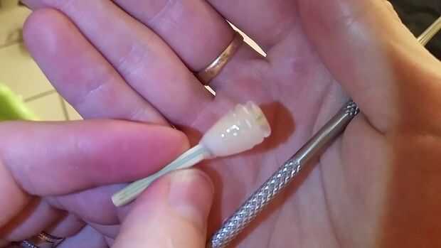 una vez se refuerza pero todavía caliente, saque la pistola y presione suavemente los bordes ligeramente más cerca uno al otro para que se fije más a pistola después de refrescar.