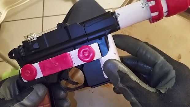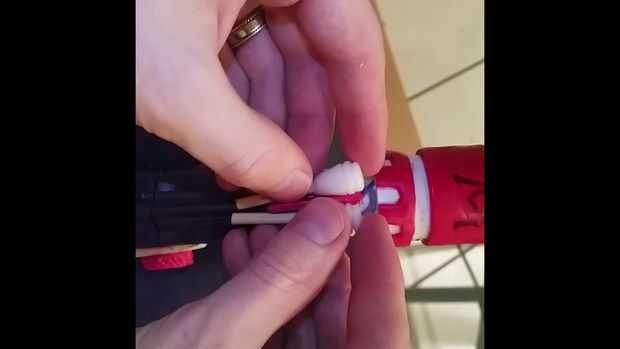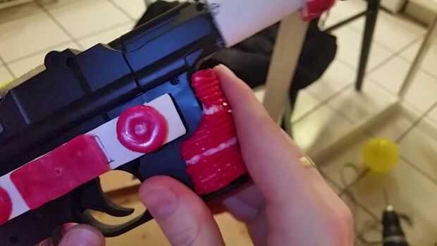 Calentar la pieza de PVC N hasta que ablanda y vuelve a su forma cilíndrica natural, mientras que su caliente y suave, utilizando guantes y apriete firmemente alrededor de la parte delantera de la pistola con la base ancha hacia la parte inferior de la pistola.