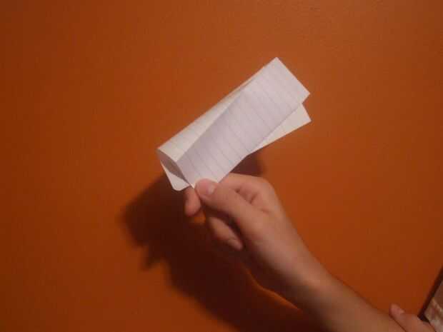 Ahora viene la difícil de explicar, pero la diversión parte. Sostener el papel para que la parte desplegada es vertical. Empuje la parte desplegada en la parte doblada en la esquina, esto debe hacer dos bolsillos en el otro lado. Ahora sostener el papel en la parte inferior donde el desplegado, entre medio del dedo índice y pulgar usted.