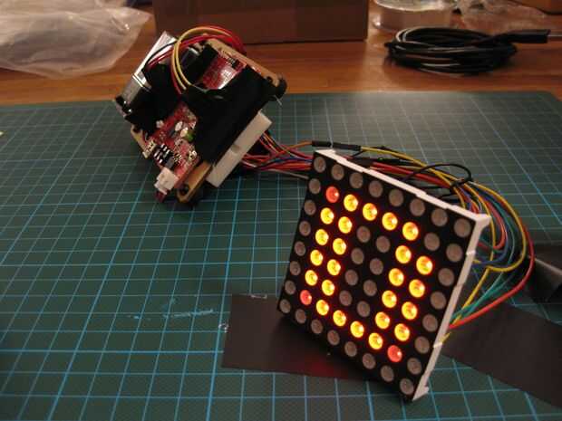 Aparte de Daft Punk, los cascos se inspiraron un poco en Casey Pugh, encontré su video (http://vimeo.com/2402904?pg=embed&sec=2402904) cuando yo estaba buscando ideas para el casco. Nunca había escuchado de un Arduino antes de que Casey me señaló en esa dirección, una muy buena convocatoria. Él hizo su propia matriz de LED, compré una matriz de Led RGB en que fue fabricado comercialmente.