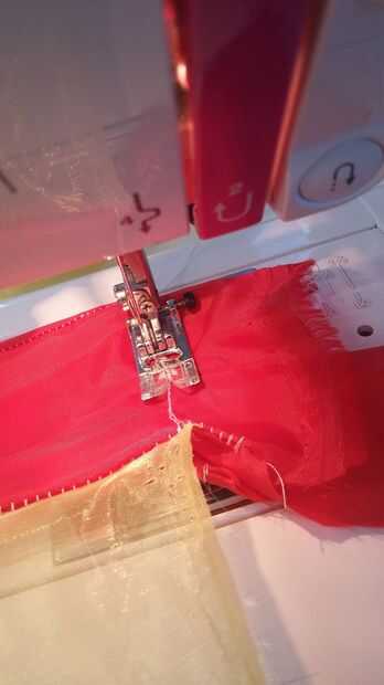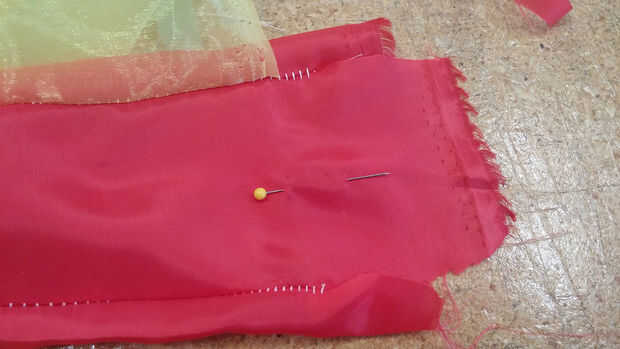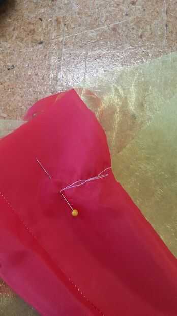 Encontrar el centro de cada panel triangular, marca con un alfiler. Acoplen dos pernos de los paneles adyacentes y cosa una costura con el conector. Recorte el extremo. Por último, doblar el extremo pequeño para hacer un lazo del dedo.