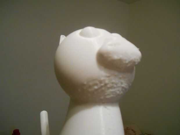Imprimí esta 2 veces, ambas veces los soportes debajo de la boca del gato se rompieron mientras era impresión (consulte el cuadro situado arriba). No hay verdadero pánico. En ambos casos los resultados fueron aceptables. También, como puede ver en una de las fotos de arriba, cuando está imprimiendo la parte inferior del túnel dentro del cuerpo del gato, es un lío y no brindan una cobertura total. No he tenido problemas con esta imperfección cuando vino a pasar los cables (discutidos más adelante) a través de este túnel. Y por supuesto, nadie puede ver en el producto final: por lo que no es un problema cosmético. Yo quería hacer este cuerpo de gato tan ligero como sea posible para que los servos de pierna podrían hacer trabajo tan poco como sea posible.