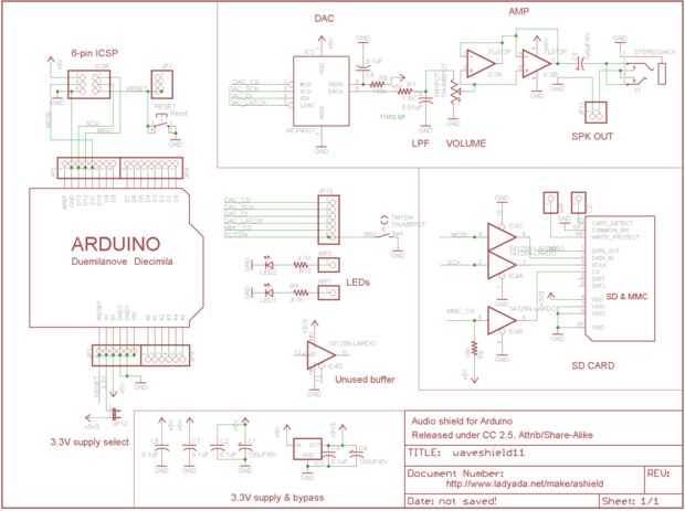 Todo, para conocedores eléctricamente, o deseando algún día convertirse en eléctrica inteligente, he adjuntado el esquema de Adafruit Waveshield a este paso como una imagen (situada arriba).