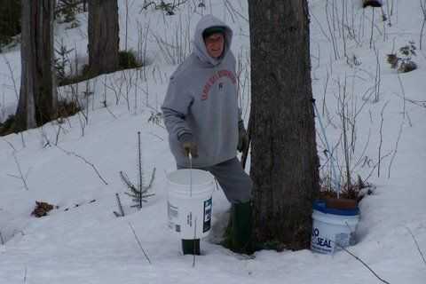 Esto es donde se pone el factor tiempo. Tarda unos 40 galones de savia para hacer 1 galón de jarabe de arce (y esto se logra a través de montones y montones de ebullición).