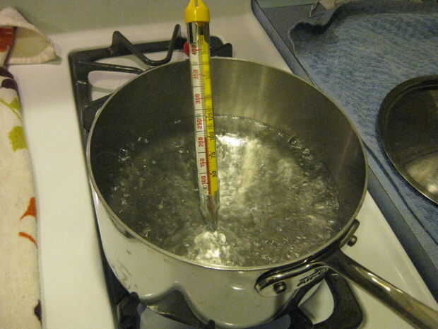 • Llevar una cacerola profunda con agua a hervir y registro de la temperatura, esto será importante para más tarde.
