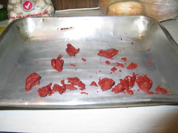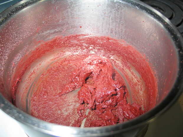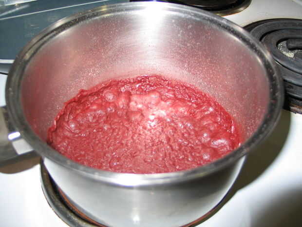 Finalmente habrá una decantación rojo y una vez que comienza la textura más viscosa que el agua esta como la etapa de "Ruido de fondo de cristal", dice James Yawn ahora baje el calor a 125 grados Celsius y colóquese guantes.